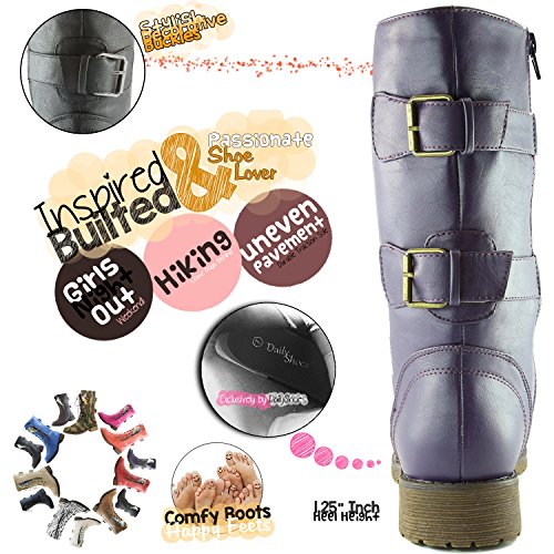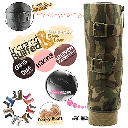 Women's Military Up Buckle Combat Boots Mid Knee High Exclusive Credit Card Pocket, Multicoloured, 6.5