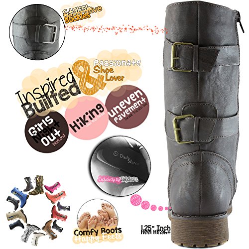• RUGGEDLY CRAFTED --With the DailyShoes Women's Military Combat Boots with Pocket, you can easily walk on all types of terrains. The slip-resistant rubber sole has a special traction grip that will keep you on your feet on slippery floors, icy sidewalks and loose gravel. The boots are constructed out of heavy-duty vegan leather that resists wear and tear, making these boots perfect for work or play.