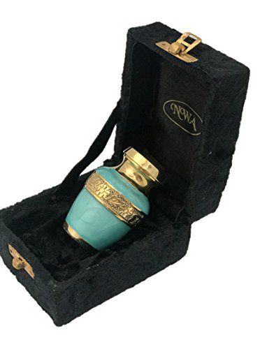 Studio : NWA Publisher : NWA Binding : Health and Beauty Product Description This is not a FULL SIZE ADULT urn. It's a small keepsake that can hold about 3 pounds of body weight before cremation. Hand engraved with beautiful sea green and gold finish. Is good only for sharing purpose. Please note- Not a full size adult urn 2.5" tall, felt lined base and screw on lid. Comes with a velvet case 0