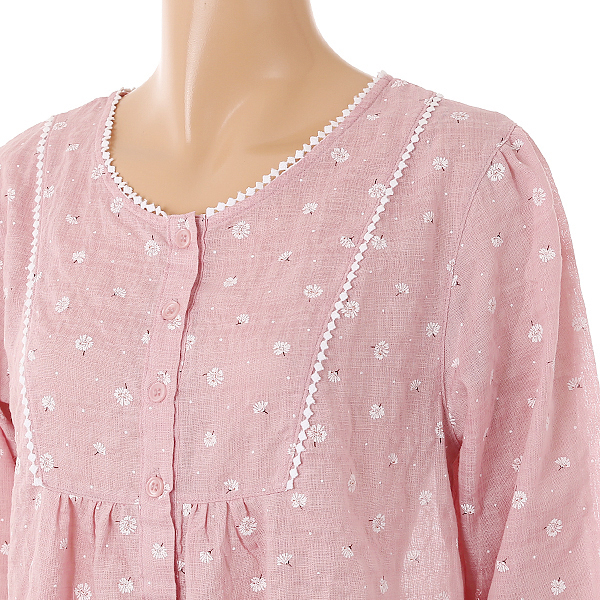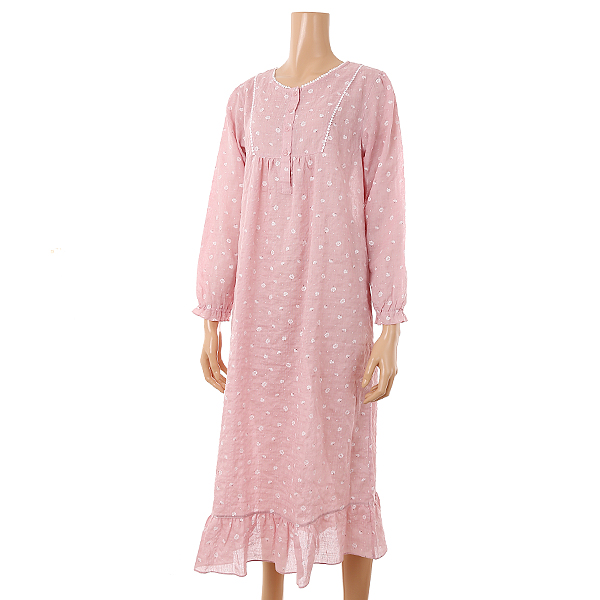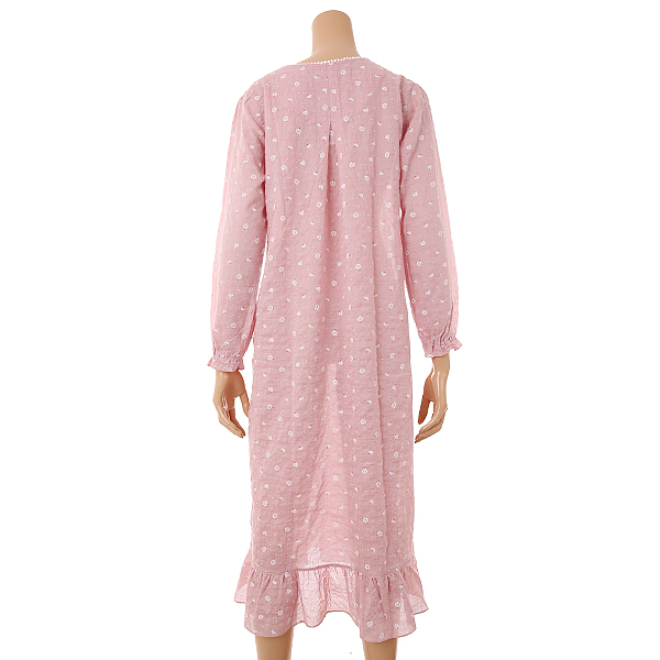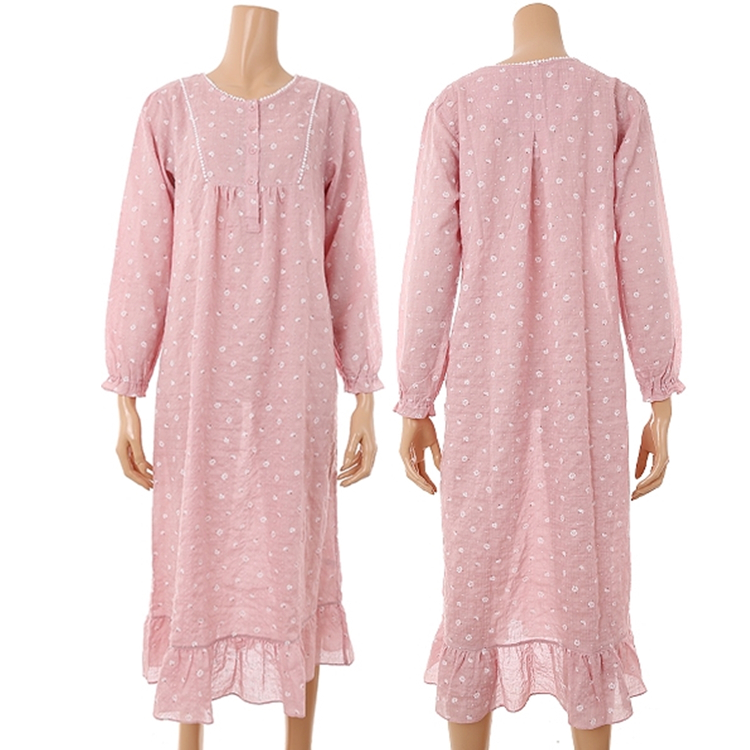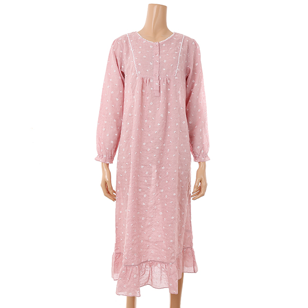 연령대와 관계없이 무난하게 착용하기 좋은 은은한 잔꽃나염의 여성 홈웨어 원피스입니다.