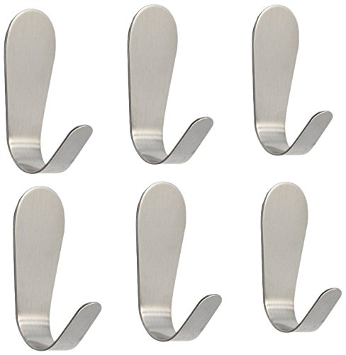 JUWO Self Adhesive Hooks, 304 Stainless Steel Heavy Duty Sticky Wall Hooks, Waterproof Coat Hooks, No Damage Nailless Metal Hooks for Key Robe Towel Hat, for Kitchen Bathroom Shower Toilet (6 Packs)
