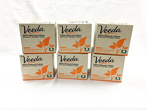 Studio : Veeda USA Publisher : Veeda USA Binding : Health and Beauty Product Description Veeda 100% natural cotton tampons, designed for a woman's shape, are worry-free in every way - effective, safe, earth friendly - and price friendly too! ? Pure 100% natural cotton tampons ? No chemicals, no synthetics, no dyes - period. ? Hypoallergenic, fragrance free, totally chlorine-free and non-GMO ? BPA-free plastic applicator features a comfort tip for smooth insertion ? Discreet, pocket-size in a whisper-quiet wrapper in a bright pick-me-up color ? Gynaecologically and dermatologically tested ? Customers report shorter periods and less discomfort ? Biodegradable tampons in recyclable packaging 0