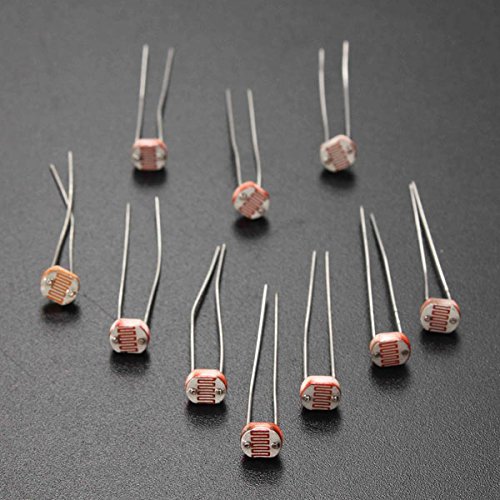 10 PCS 5MM GL5528 Light Dependent Resistor Photoresistor LDR Features: Photosensitive resistance is the resistance of a semiconductor material, the conductivity change with light intensity varies. The use of this feature will work made of different shapes and light-receiving area of the photosensitive resistance. Photoresistor is widely used in toys, lamps, cameras and other industries. Specification: Model: GL5528 Maximum voltage: 150V, DC Maximum wattage: 100mW Operating temperature: -30 C ~ 70 C Spectral peak: 540nm Bright resistance (10Lux) (K): 10 - 20 Dark resistance: 1 M 10010: 0.6 Response time: 20ms (Rise), 30ms (Down) Resistance illumination: 3 Package included: 10 x Photoresistor GL5528