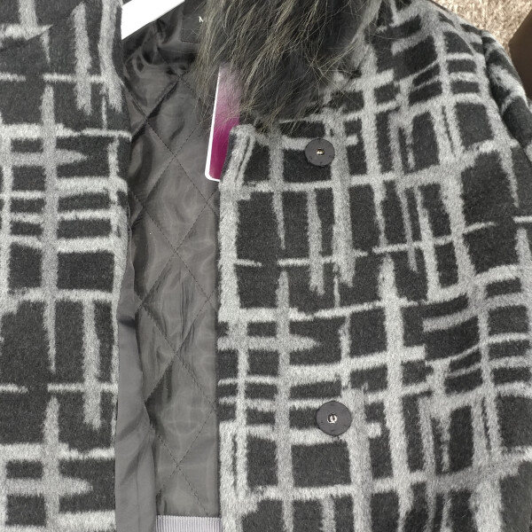 패브릭이 유니크하면서도 멋스러운 분위기를 연출해드리고 백라인안쪽에 누빔처리가되어있어 더 따스하며