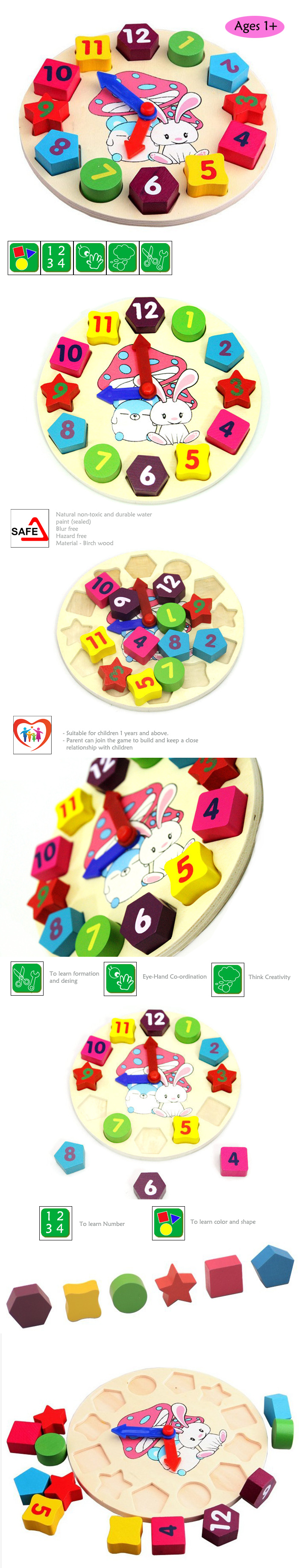 A great educational toy suitable for parents & teachers to introduce time, numbers, colors & shapes to children.