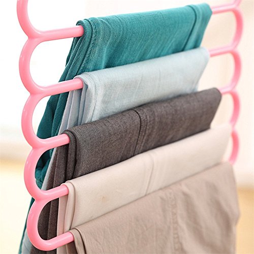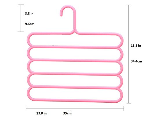 -. Feature : Conserves space, hangs up to five pairs of slacks / Much wide application range for clothes, towel, scarf, ties / Keep pants neat and organized on the poles and tidy, but also keeps them compact / Made from sturdy material, the hanger is well-built and long lasting / Compact streamlined design saves much closet space but leave no wrinkle on