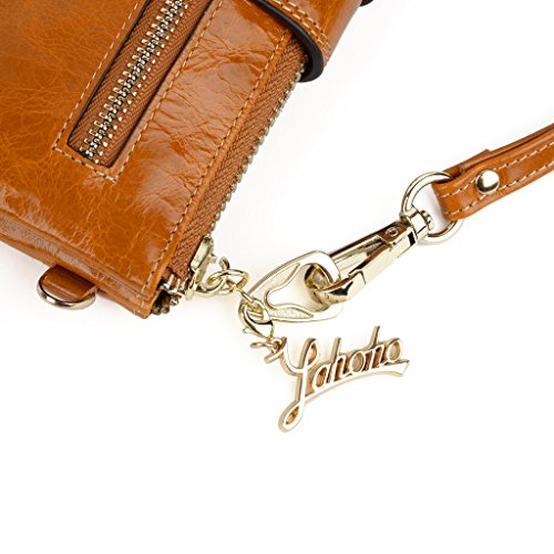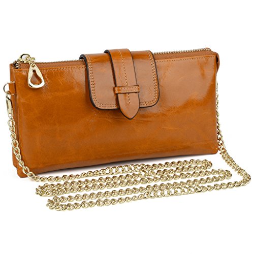 - Title : Yahoho Women's Large Capacity Genuine Leather Wristlet Wallet Smartphone Clutch with Metal Shoulder Chain Brown