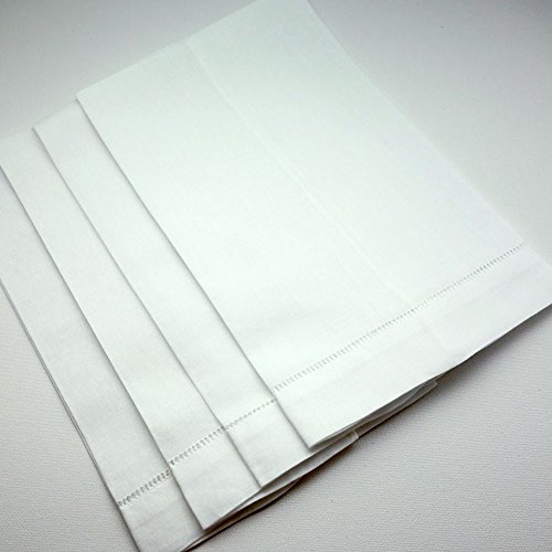 White Linen Hemstitched Tea Towels-Set of 4- Ladder Hem Stitch Cloth Guest Hand