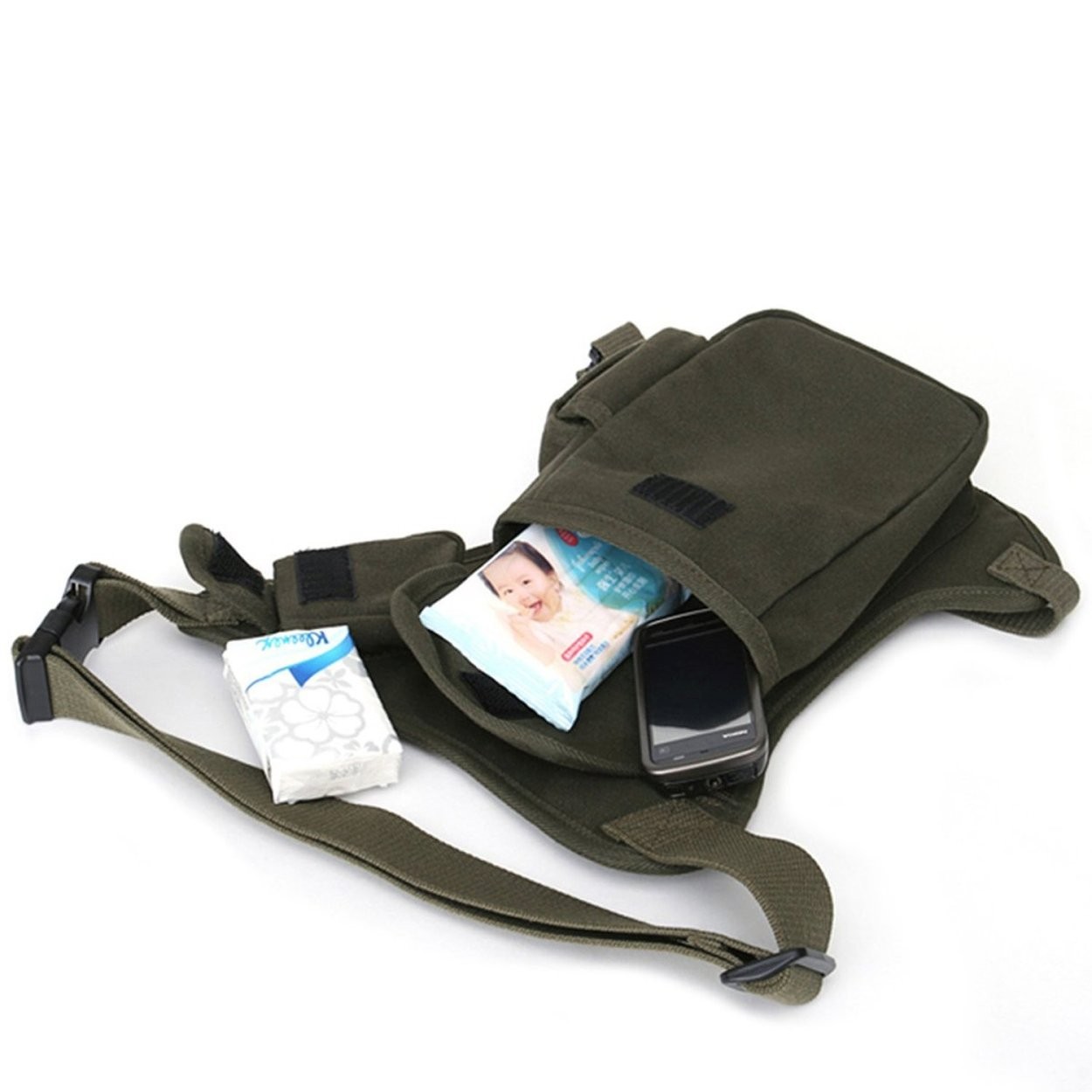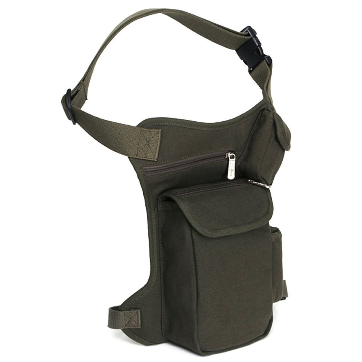 【サイズ調整可能】バッグのウエスト部とレッグ部もベルト付き、長さを調整することができ、バックルで繋がれています。