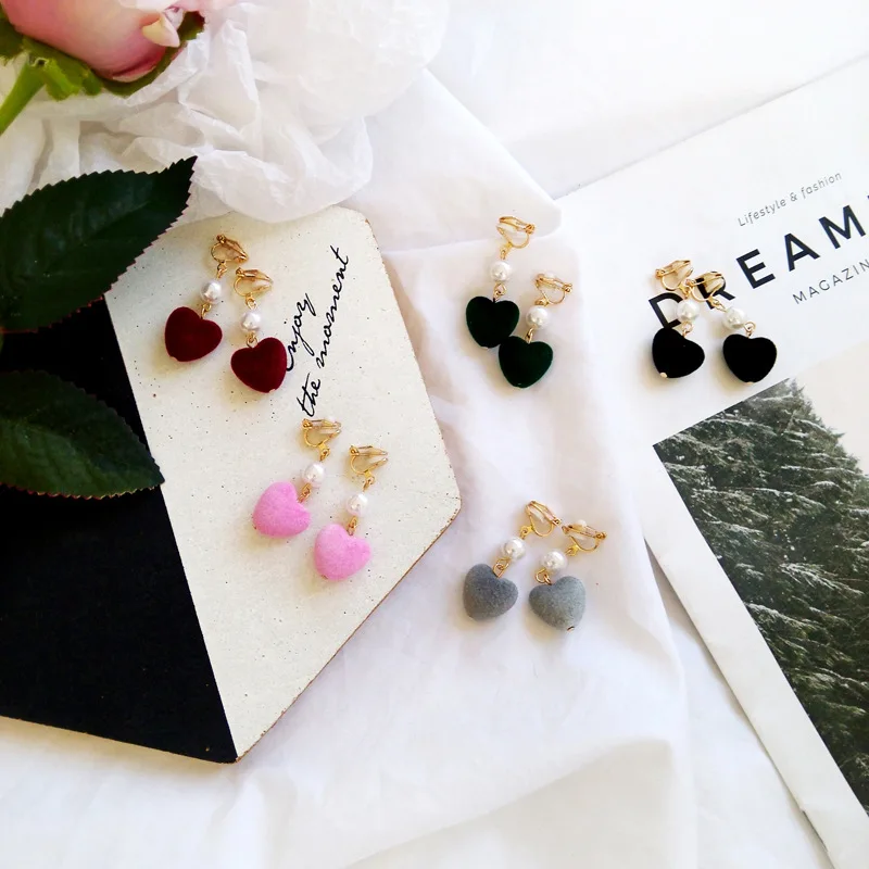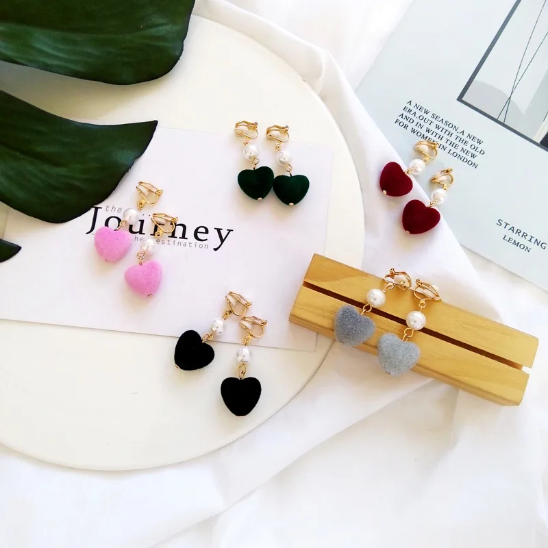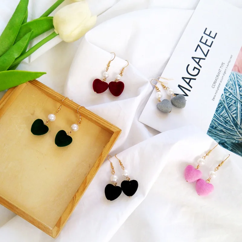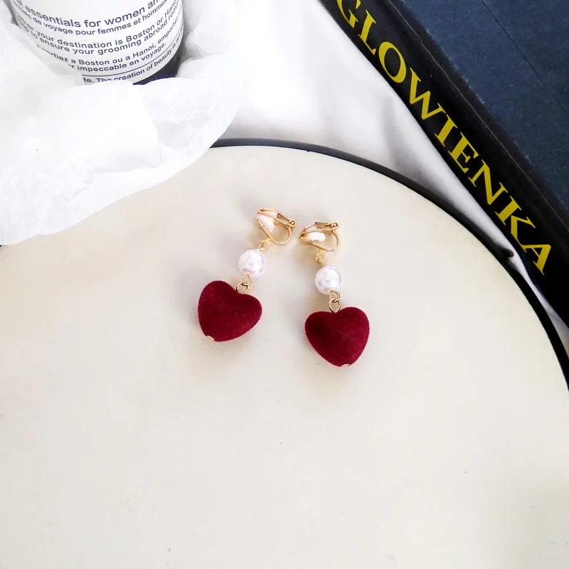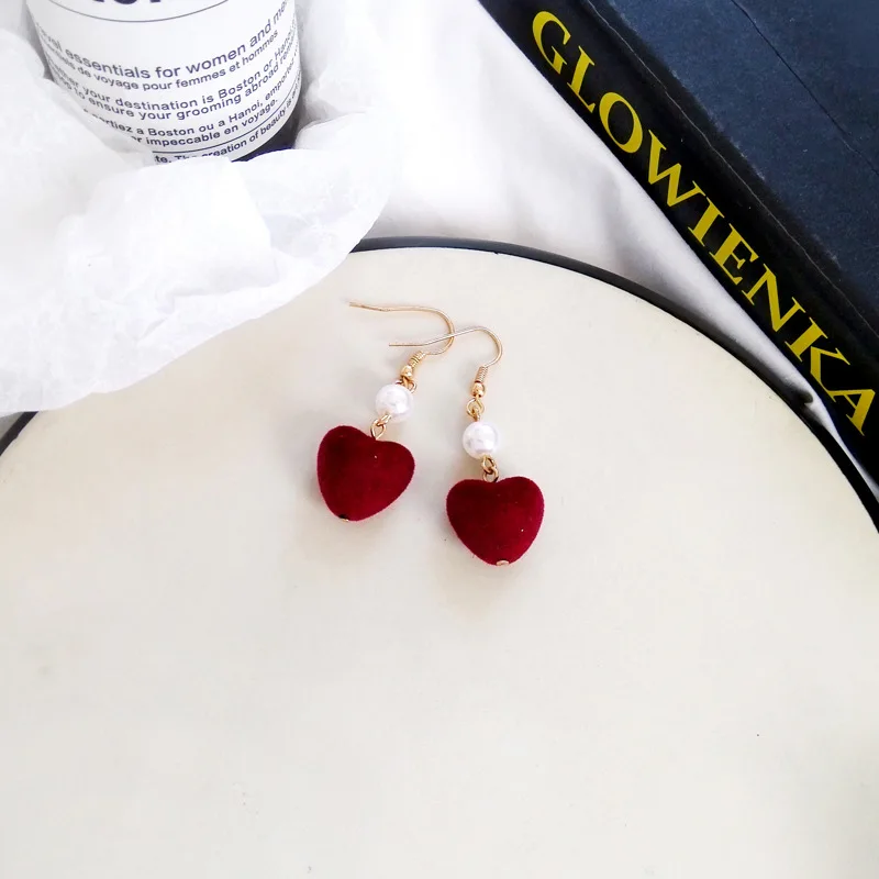 Decoration on earrings:Simulated Pearl Brincos Heart Shape earrings