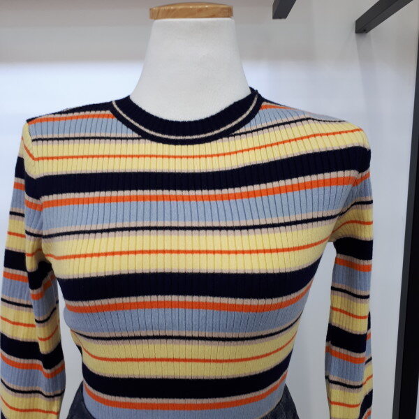 신축성좋은 배색 스트라이프니트입니다골지타입은 기본니트이며 이너로 레이어드하기 아주좋아요