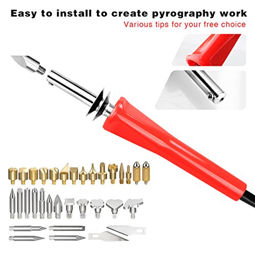 JUNING 38pcs Wood Burning Kit for Wood Burning/Carving/Embossing/Soldering with Carrying Case, 33 Tips, 2 Stencils and a Metal Stand