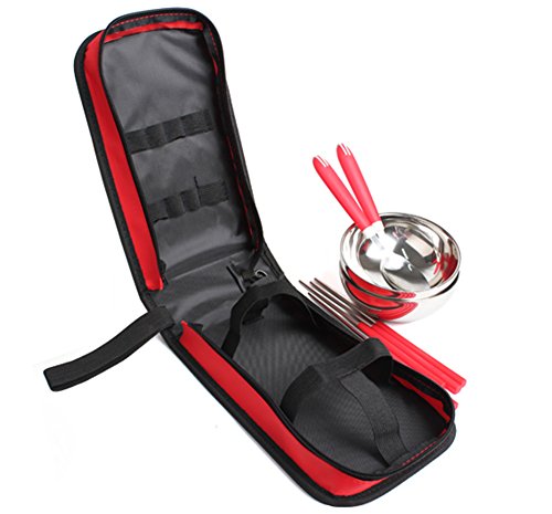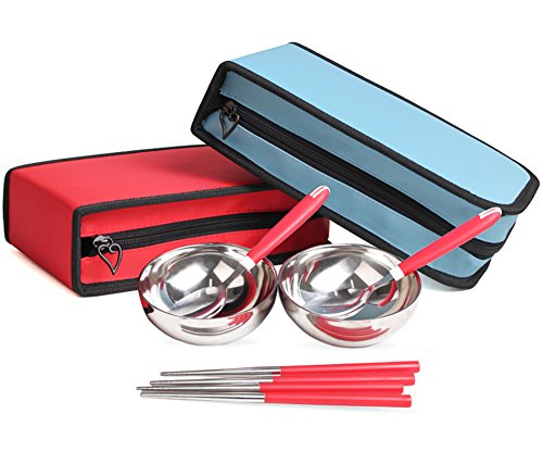 원본상품명: SGFY アウトドア用食器セット ステンレス 二人用 一人用 碗 箸 スプ?ン (二人用のレッド)