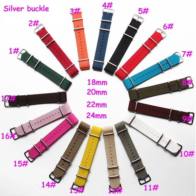 | [해외]Hight 품질의 손목 나일론 나토 시계 스트랩 18 미리메터 20 미리메터 22 미리메터 24 미리메터 실버 버클 여러 가지 빛깔의 시계 밴드 방수 시계 스트랩 |