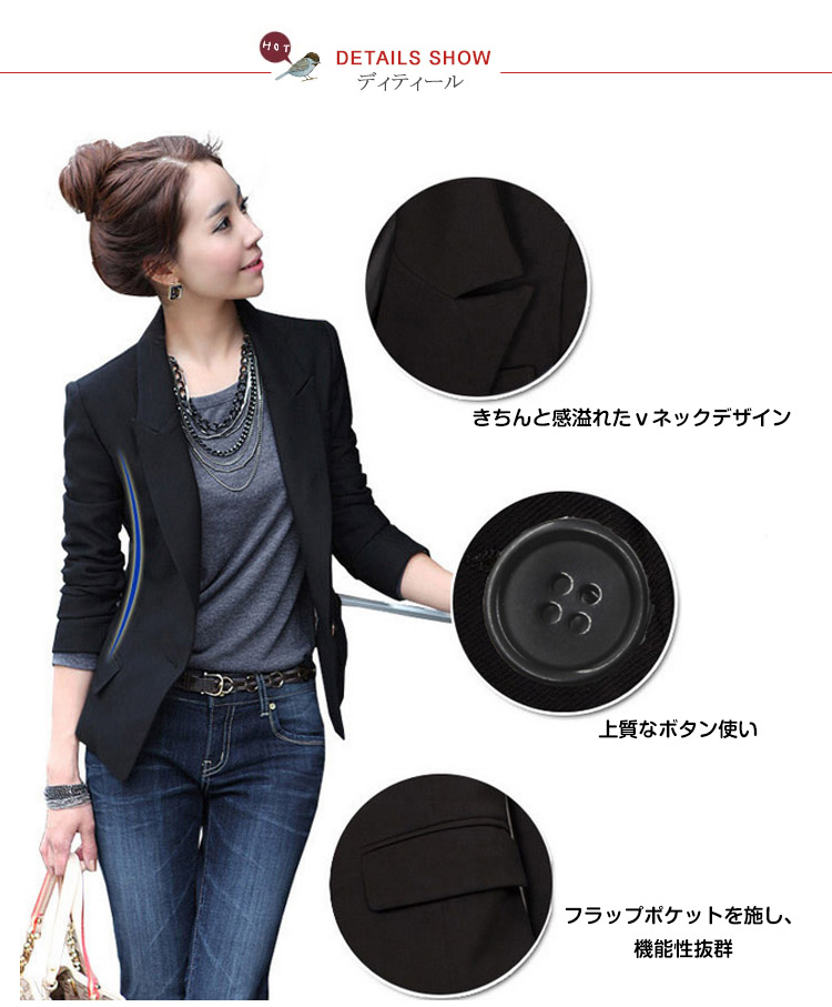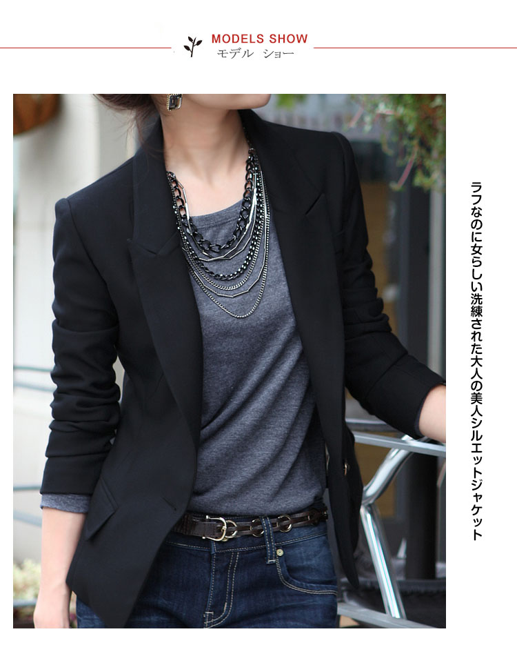 | ラフなのに女らしい洗練された大人の美人シルエットジャケットしっかりとFITして動きやすく、着心地も抜群☆ 程よく抜け感もあるので仕事以外にもイベントやカジュアルコーデにも着回しできます。自分の好みやスタイルに合わせてお気に入りの一枚を見つけてみて^^ | |