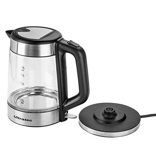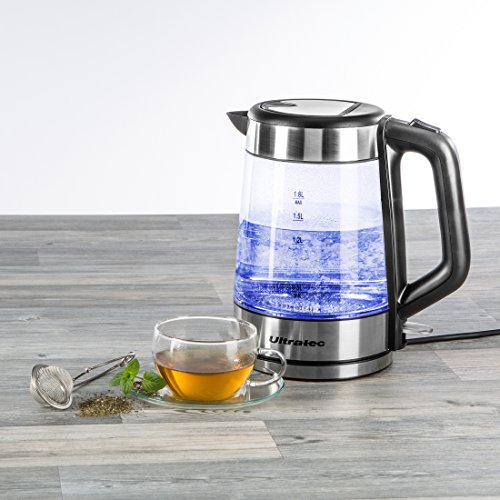 Ultratec-Kuche Ultratec LED Wasserkocher BlueVita100 2.200 Watt, 1.7 Liter, Edelstahl/Glas Wasserkocher