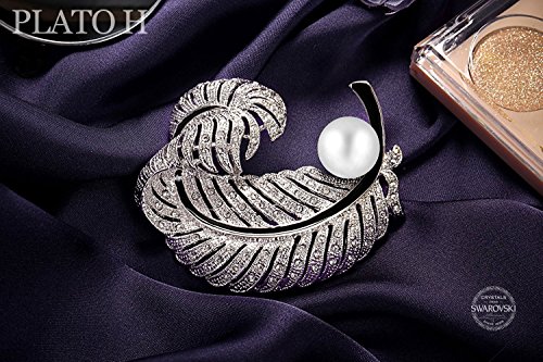 -. Feature : PLATO H Love Cultured Pearl & Feather Brooch with Swarovski Crystal Women Fashion Jewelry Valentine's Day Gifts, Mother's Day Gifts, Birthday Gifts. / PLATO H is the jewelry brand that is an Ingredient Branding Partner of SWAROVSKI ?Brand Contract ID?SWA-17562-Y1S3Q7?AUTHENTIC: 100% Genuine SWAROVSKI ELEMENTSA Crystals & HIGH QUARLITY Rhodium Plated Alloy. / MEASUREMENTS: Weight: 1.1 ounces, Length: 2.44 inches, Width:2.08inches, Height:0.47 inches / APPLICATION: Nice GIFT for her on Birthday, Wedding Anniversary, Valentine's Day, Christmas, Mother's Day, etc / GIFT BOX: All PLATO H Designs are Packaged in a SEALED Gift Box, Perfect for Any Occasion. Package Includes: Love Pearl & Feather Brooch +Instruction Book+Jewelry Cleaning Cloth(With PLATO H Logo).