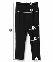 | 尺码 | ①裤长 | ②腰围 | ③臀围 | ④大腿围 | ⑤膝围 | ⑥脚围 | ⑦前裆 | ⑧后裆 | ||