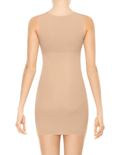 - Feature : Ultra-thin tank slip / Flattens your tummy and firms your rear while flattering your chest / Straps prevents your bra from showing / Bonded arm holes and hem for sleek transition to skin / Built-in bodysuit with hook-and-eye closure