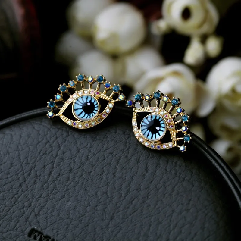 Production name ::Personality Unique Godl Plated Blue Eyes Women Stud Earrings