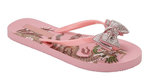 Product DescriptionDragon print flip flop with rhinestone bow ornament0