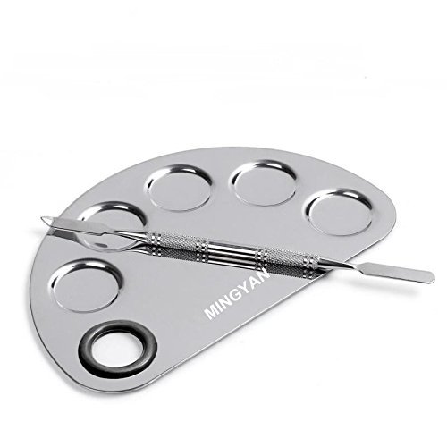 Mingyan Pro Five Holes Makeup Palette Nail-art Manicure Artist Tool Stainless Steel Cosmetic Palette with Spatula Tool