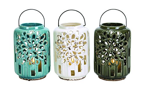 -. Title : Benzara Beautifully Styled Ceramic Lantern, 3 Assorted Colors