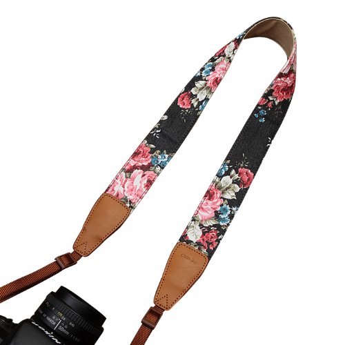 Print Denim/Leather Camera Shoulder Neck Strap for Nikon Canon Leica Olympus 7137 !Flower Theme