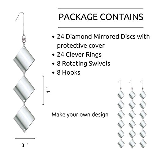 TERAVEX Bird Repellent Discs - Most Effectively Rod Scare Birds Away Like Woodpeckers Pigeons Grackles & More - Reflective Devices Make Attractive Hanging Reflectors For Windows, Trees -Set 24 Diamond