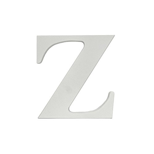 -. Feature : Wooden letters are 8 inches tall and five-eighths inch thick; width varies by letter, but allow approximately 8-9 inches for each letter when planning your layout / Color is a true white and will coordinate with any wall or furniture colors in the nursery or bedroom / Or easily hand or spray paint any color or designs for a custom look; even decorate with wall decals that coordinate with bedding for a unique look / Hang from a nail, screw, or pin using the picture frame style hole on the back; or use one of three included ribbons (blue, gray, and pink) that easily attach to back using included hardware / For use in the baby nursery, bedrooms, playrooms, or anywhere in the house; even attach them to a toy chest to personalize it