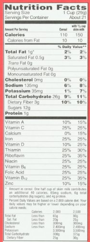 -. Feature : Colorful, sweetened multi-grain cereal / Provides 3 grams of fiber / Enriched with 11 essential vitamins and minerals / Perfect breakfast for the whole family
