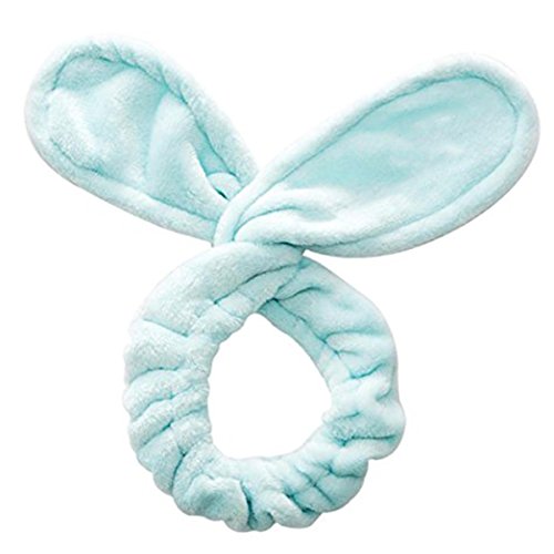 Headband by eFemme USA Velvet Elastic Bunny Ears - Spa Wash Face Makeup Facial Hair Band Wrap (Mint Green/Blue)
