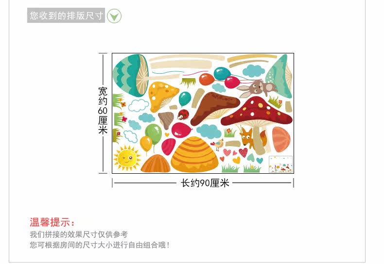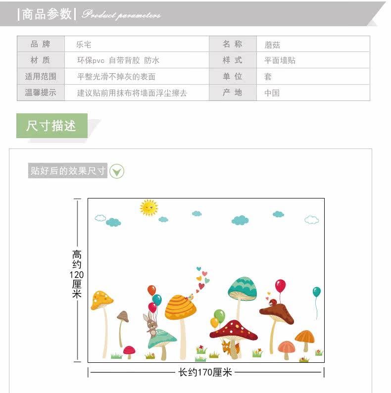 卡通儿童房卧室装饰可爱蘑菇贴纸可爱幼儿园走廊自粘墙贴纸贴画