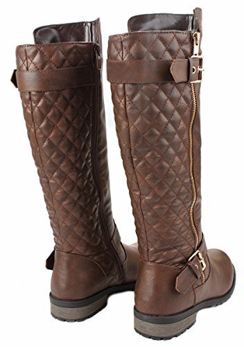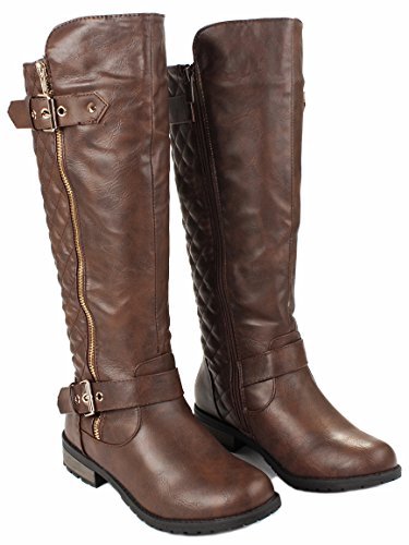 Forever Mango-21 Women's Winkle Back Shaft Side Zip Knee High Flat Riding Boots Brown 9