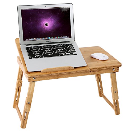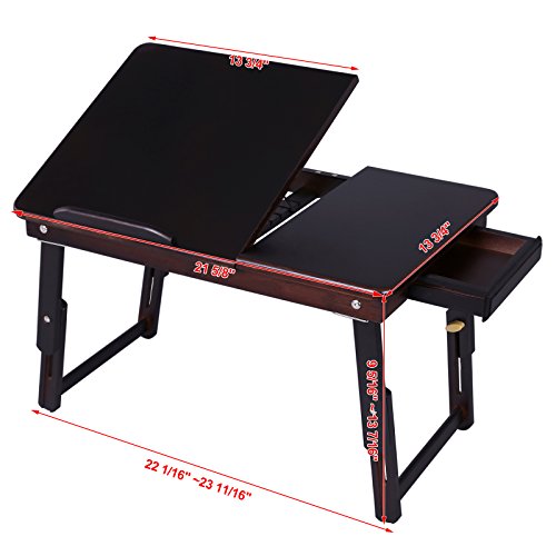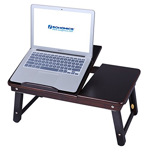 -. Title : SONGMICS Bamboo Lap Desk Adjustable Breakfast Serving Bed Tray Tilting Top Drawer
