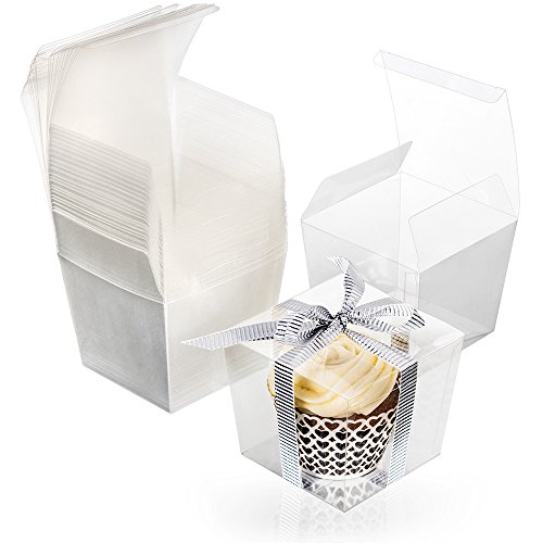 25 pcs Already folded (NOT FLAT PACKED) Clear Plastic Tuck Top PVC 3"x3"x3" Cupcake Wedding Party Boxes. Launch special.