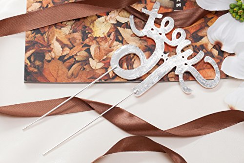 1. The topper size is approx 4.7" wide and 4" tall (4" prongs length not included). 2. It is handmade to be best, we adopt satellite rhinestones to prevent stones missing; unlike flat-back rhinestone used by other suppliers, the satellite rhinestone we used has a tridimensional bottom and will sit more firmly against shipping damage. 3. The piece weighs about 0.23lb, and will sit evenly atop without sinking. The prongs inserted into the cake are food-safe and processed with high standard finish with good chemical stability, they can be trimmed to your desired height. 4. After thorough check by QC, it is packed and sealed in a foam-padded box. Package includes one topper and a free ribbon.