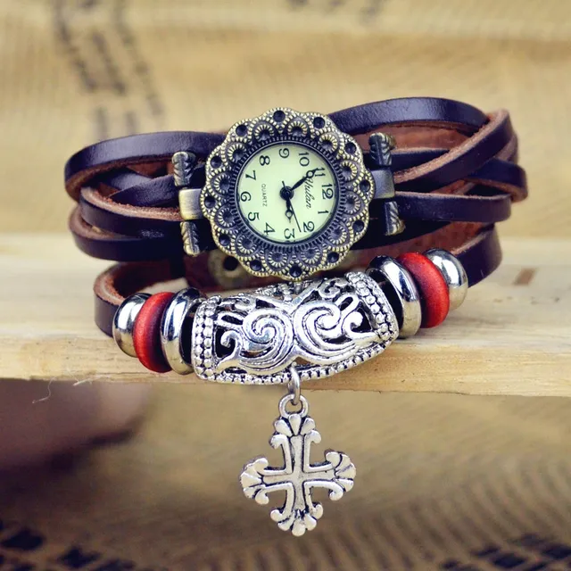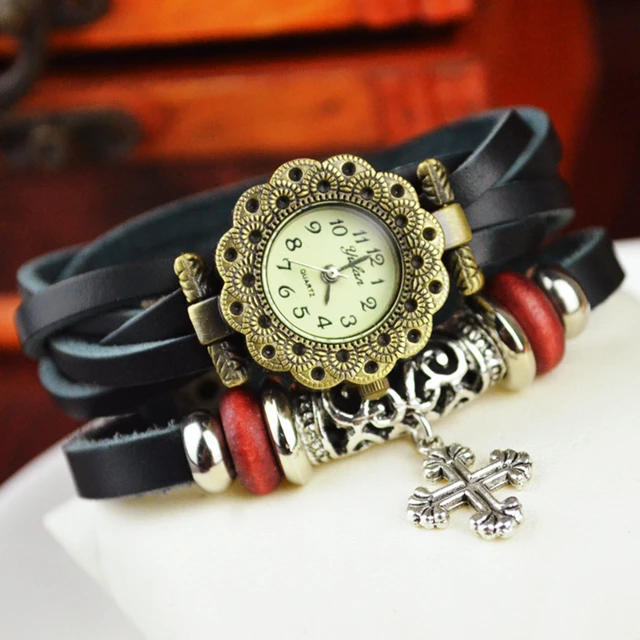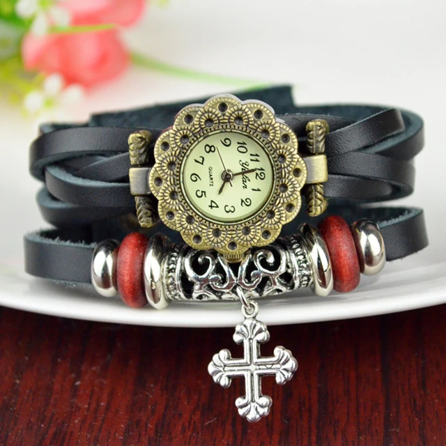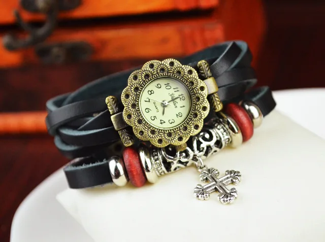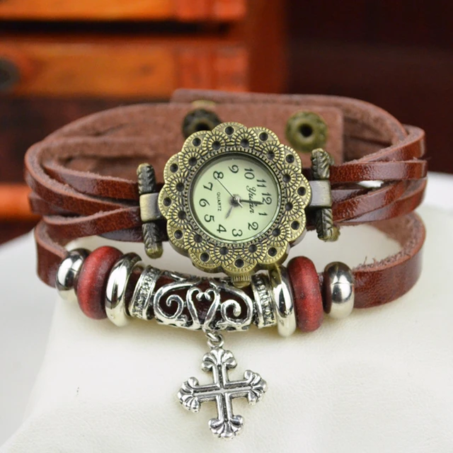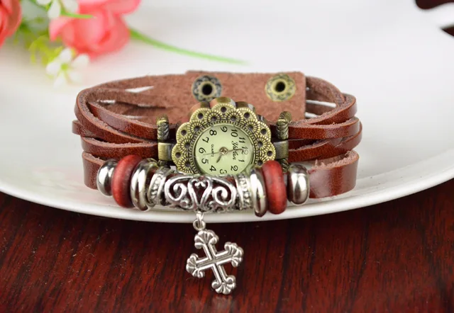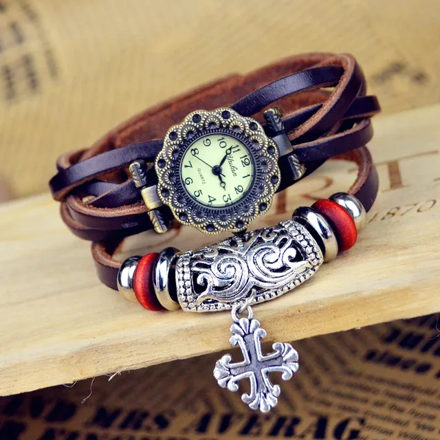 | [해외] 저렴한! 지우기 재고! 최고의 판매 여성 가죽 팔찌 시계 레이디 드레스 시계 크로스 빈티지 시계 번호 52 |