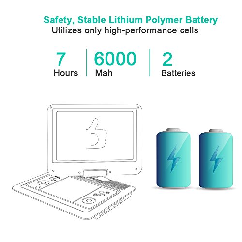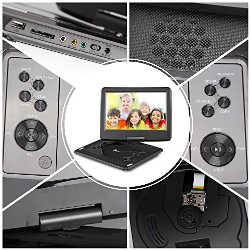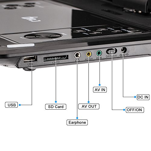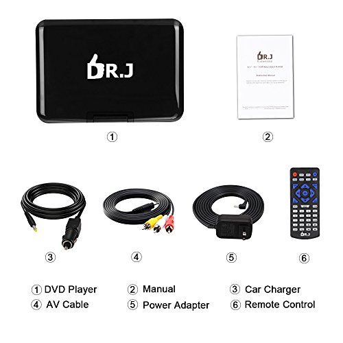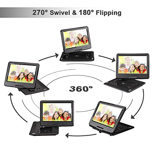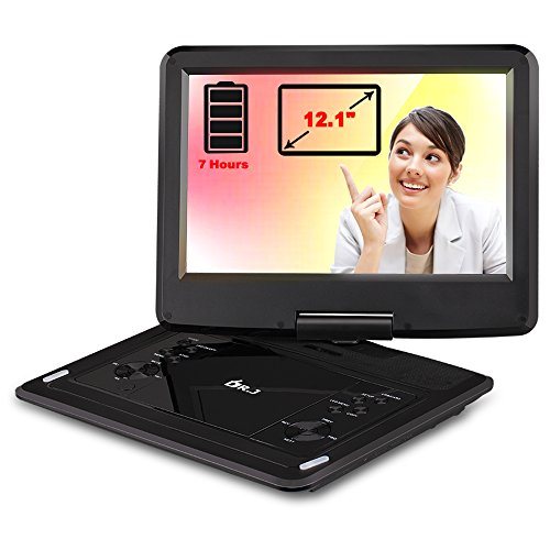 DR.J 12.1 inch 7 Hours Portable DVD Player, with Build-in Rechargeable Battery, 270°Swivel Screen, 1.8M Car charger and Power supplier, SD Card Slot and USB Port, Black (12.1")