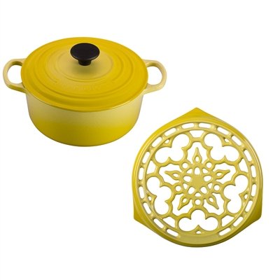 르쿠르제 Le Creuset Soleil Enameled Cast Iron 4.5쿼트 라운드Dutch Oven and Deluxe Round Trivet세트