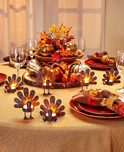 Binding : Kitchen Product Description Thanksgiving centerpiece with this Set of 6 Turkey Tea Light Candleholders. Use these rustic turkeys to hold your own candles (sold separate). You get 3 sitting and 3 standing turkeys. Approx. 4"W x 2-3/4"D x 4"H, each. Metal. 0