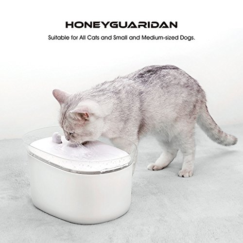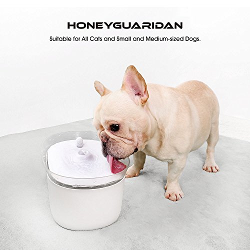 Studio : HoneyGuaridan Publisher : HoneyGuaridan Binding : Misc. Product Description Research shows one way to improve your pet's health is to get him to drink more water. Water is essential for supporting your pet's vital organ function. On average, your pet should drink one ounce of water per pound of weight daily. HoneyGuaridan W25 Automatic Pet Water Fountain Dispenser with infrared induction provides convenience for you while giving your pet plenty of water to stay hydrated. Continues mode: The first time you use this fountain, you should turn on the continues mode to attract your pet to drink water. Your pet will become accustomed to the unit within a few days. It is imperative to monitor your pet's use of the fountain at first several times to ensure that he or she is drinking to avoid dehydration. Low energy consumption : approximately 2.6 KWh monthly. Infrared induction mode: After your pet is accustomed to drinking by himself or herself, you can switch on infrared induction mode. The water fountain will dispense water when the infrared sensor detect your pets within 1.5 meters. At night, there is no continuous noise and you can have a good sleep. Lower energy consumption than any other fountains. Intermittence mode : in intermittence mode, the water fountain dispense water each half hours ,and each time keep flowing water for half an hour. All designed for low-carbon and environmentally-friendly. Package contains: HoneyGuaridan W18 Automatic Pet Water Fountain Dispenser *1 Replacement carbon filter*3 Charger*1 User Manual *1