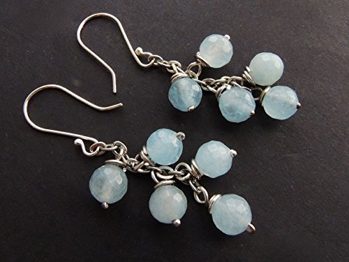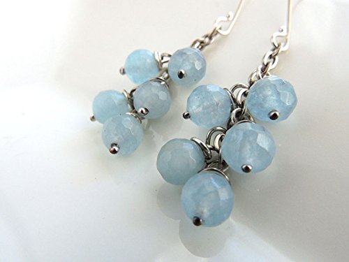 -. Title : Ice Blue Jade Silver Dangle Earrings