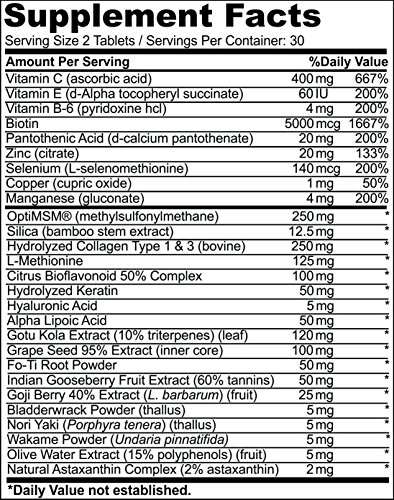 -. Feature : Packed with essential amino acids and nutrients such as 5,000 mcg Biotin, and proprietary MSM (Methylsulfonylmethane) to support maximum hair growth / Scientifically formulated ingredients list to ensure all natural hair growth deficiencies are met. It blows Hairfinity out of the water! / Our proprietary hair growth vitamin specifically addresses the nutrient deficiencies found in many African American women (and men!) / Biotin level increased to 5,000 mcg. Silica Supplements add beautiful sheen to your hair. / Manufactured in the USA, in a 98,000 sq ft. FDA registered and inspected, NSF certified GMP (Good Manufacturing Practices), state-of-the-art manufacturing facility.