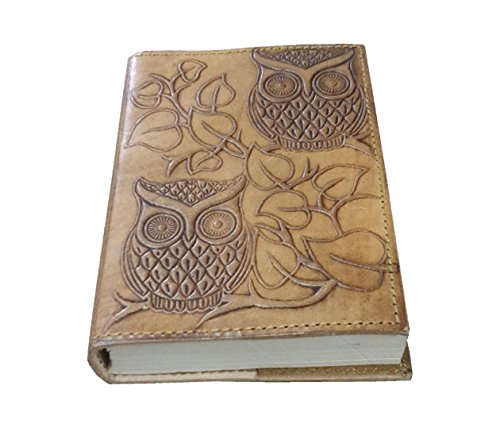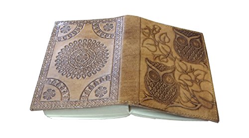 -. Title : Handmade Owl Embossed Leather Journal Pocket style Re-fillable 7x5 Blank Pages Tanned Color for Men and Women