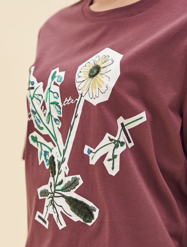 - 전면의 플로럴 프린트에 자수를 얹어 고급스럽게 마무리한 아이템입니다.