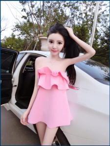 ベアワンピース ベアドレス セクシー プチプラ カラードレス 胸フリル デザイン 無地 シンプル プチプラ