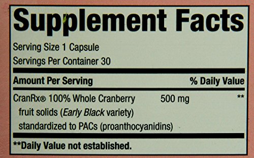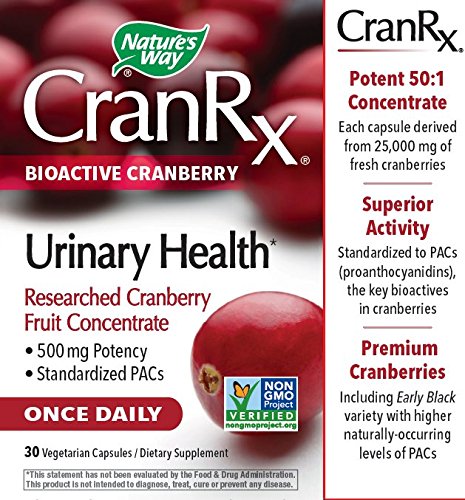 CranRx; a once daily cranberry supplement with 500 mg of 100% whole cranberry fruit solids to support urinary health*, Non-GMO project verified