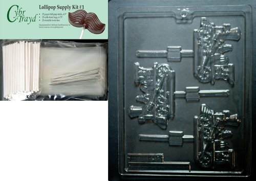 Cybrtrayd 45StK25S-K049 Train Engine Lolly Kids Chocolate Candy Mold with Lollipop Supply Bundle, Includes 25 Lollipop Sticks, 25 Cello Bags, 25 Silver Twist Ties, Instructions