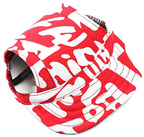 -. Feature : There is a graphic pic in the left second position, it introduce the head width and circumference, please take the two indexs into consideration and this hat is only designed for SMALL, EXTRA SMALL DOG, please pay special attention / Color: multicolors available, Material: Durable canvas / This canvas basebell is designed for small breeds, two sizes available, S--head width: 5.9"/15cm, head circumference:13.77"/35cm, M--head width: 7.08"/18cm, head circumference:14.96"/38cm / With two holes at the top, breathable and comfortable / Cute and fashion dog hat for your puppy, special hat to make your dog unique and attractive